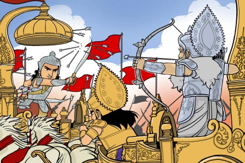 ระหว่างที่ท้าวภีษมะเร่งรถม้าทำลายล้างกองทัพปาณฑพสร้างความหวาดกลัวไปทั้่วสมรภูมิ ฝั่งพี่น้องปาณฑพเห็นท่าไม่ดี อภิมันยุ ผู้เป็นบุตรชายของอรชุนก็เร่งรถม้าเข้าไปรับศึก อภิมันยุรับมือการโจมตีของท้าวภีษมะได้อย่างสูสี... -