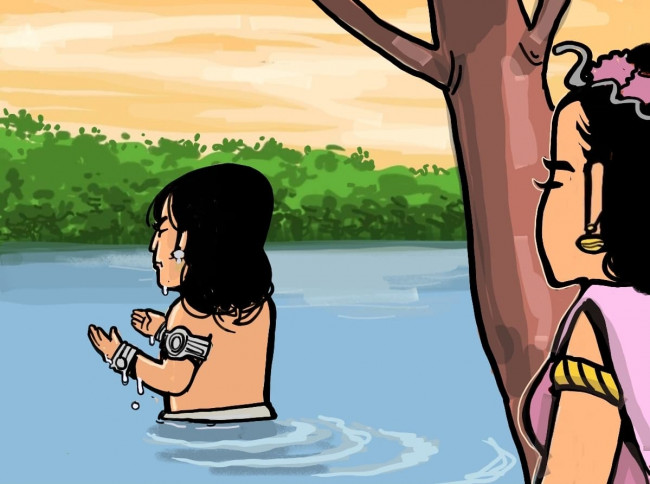 ระหว่างที่อรชุนล้างเนื้อล้างตัวอยู่นั่นเอง ได้ปรากฏหญิงสาวคนหนึ่งแอบมองอรชุนที่ล้างตัวอยู่ในแม่น้ำคงคา โดนที่อรชุนไม่รู้สึกเลยว่ามีคนจับจ้องมองตนเองอยู่