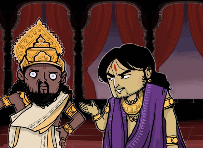 หลังจากที่พี่น้องปาณฑพได้ขอลา เพื่อเดินทางกลับเมืองอินทรปรัศถ์ ฝั่งทุรโยธน์ ทุหสาสัน ศกุนิ และราธียะ ก็นั่งประชุมกันเพื่อวิพากย์วิจารณ์การเข้ามาแทรกแซงของท้าวธฤตราษฏร์ โดยเฉพาะทุรโยธน์ที่โกรธเป็นฟืนเป็นไฟ เพราะท้าวธฤตราษฏร์มาทำลายโอกาสอันดีที่จะทำลายล้างพี่น้องปาณฑพให้สิ้นซาก