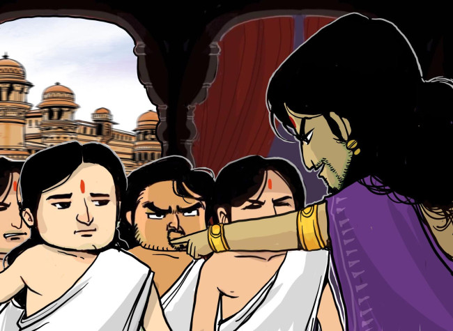 เมื่อผลการตัดสินออกมาว่าพี่น้องปาณฑพต้องแพ้พนัน พี่น้องปาณฑพและพระนางเทราปทีก็ยอมรับชะตากรรม ต่างปลดเครื่องทรงกษัตริย์ และแต่งตัวเป็นพราหมณ์เหมือนพวกสัณยาสี ทั้งหมดกล่าวอำลาเหล่าผู้อาวุโสของหัสตินาปุระ และเริ่มเดินทางออกจากเมืองหัสตินาปุระ มุ่งตรงไปยังป่าในทันที ประหนึ่งจะออกจากพิธีกรรมที่น่าอับอายนี้ให้ไวที่สุดเท่าที่จะเป็นไปได้