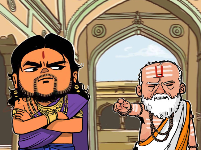 ราธียะก็ให้ความเห็นว่า ตอนนี้พี่น้องปาณฑพกำลังอ่อนแอไม่มีกองกำลังใดๆ สนับสนุน เราควรจัดทัพไปจัดการเสีย จะได้หมดเสี้ยนหนามในอนาคต ซึ่งทั้งสองคนก็เห็นด้วยกับความเห็นของราธียะ แต่ติดเสียที่ว่าระหว่างกำลังนั่งปรึกษาแผนการอยู่นั้น ฤาษีวยาสผู้รู้เรื่องราวทุกอย่างก็ปรากฏตัวขึ้นมาและสั่งห้ามไม่ให้คนทั้งสามวางแผนทำสงครามต่อไป