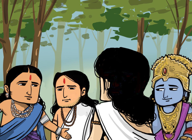 เวลาของการอยู่ป่าของพี่น้องปาณฑพผ่านมาอีกไม่กี่วัน กฤษณะ พร้อมด้วยญาติๆ และธฤตทยุมันพี่ชายของพระนางเทราปที ก็เดินทางมาเยี่ยมเยียนพี่น้องปาณฑพถึงป่ากามัยกะ