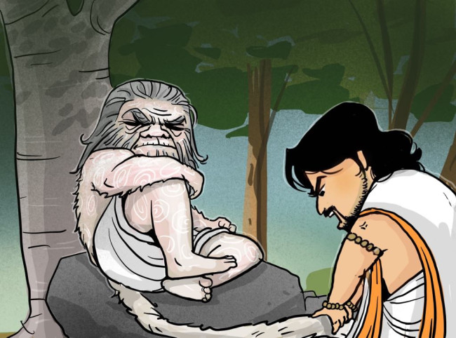 สิ่งหนึ่งที่ภีมะตระหนักได้ในตอนนี้ คือ ลิงแก่ตนนี้ไม่ใช่ลิงธรรมดาอย่างแน่นอน