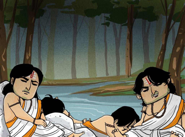 วันหนึ่งพี่น้องปาณฑพได้รับคำขอร้องจากพราหมณ์คนหนึ่ง ให้ช่วยออกตามหาไม้อรณี ซึ่งเป็นไม้ที่พราหมณ์ใช้สำหรับทำพิธีบูชาเป็นประจำทุกวัน ที่ถูกกวางตัวหนึ่งคาบหนีออกจากที่พักไป