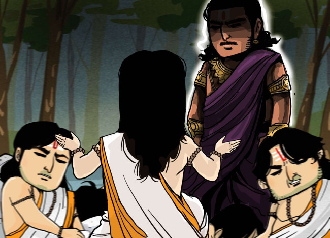 ภาระอันหนักอึ้งจึงตกเป็นของยุธิษเฐียร ที่จำเป็นต้องเลือกน้องคนใดคนหนึ่งให้ฟื้นคืนชีพขึ้นมา สำหรับยุธิษเฐียรแล้ว ภีมะ คือ น้องคนที่ใกล้ชิดกับตนเองมากที่สุด อรชุน คือ น้องคนที่มีศักยภาพในการรบมากที่สุด มีความสำคัญต่อสงครามที่จะเกิดขึ้นในอนาคต