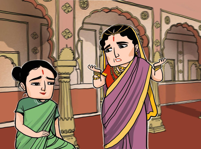 พระนางสุเทศนาได้ยินดังนั้นก็เกิดความเวทนา จึงได้รับนางไศรันธรีเข้ามาเป็นข้ารับใช้ แต่กำหนดเงื่อนไขให้นางไศรันธรีต้องห้ามออกจากห้องเด็ดขาดเพราะความงามของนางไศรันธรี อาจไปติดตาต้องใจของผู้ชายคนใดเข้า โดยเฉพาะท้าววิราฏสามีของนางเอง