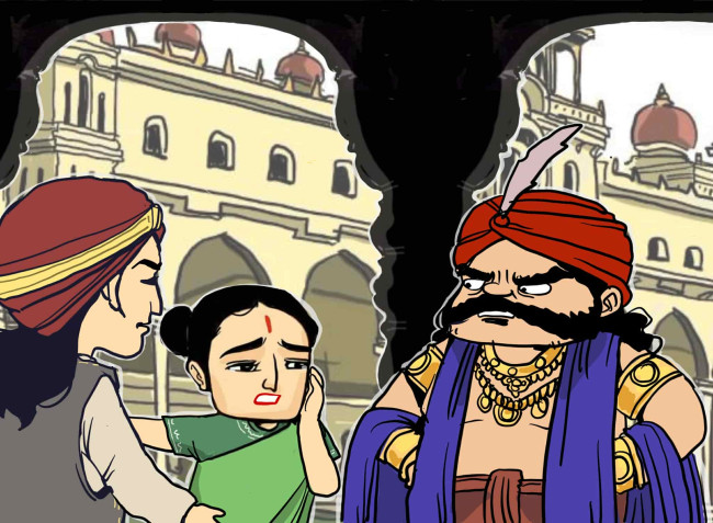 นางไศรันธรีลุกขึ้นได้และรีบวิ่งไปยังตำหนักของท้าววิราฎ เพื่อให้ท้าววิราฏทราบเรื่อง และหวังว่ากังกะ (ยุธิษเฐียร) ที่อยู่ข้างกายท้าววิราฏจะเอาเรื่องเจ้าชายกีจักรอย่างถึงที่สุด