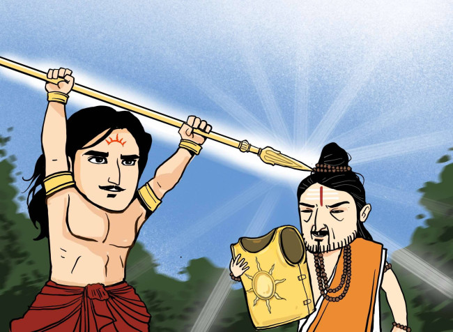 ราธียะกระหยิ่มยิ้มย่อง และกล่าวกับพระอินทร์ว่าราธียะตั้งใจจะใช้อาวุธวิเศษนี้เพื่อจัดการกับอรชุนเท่านั้น