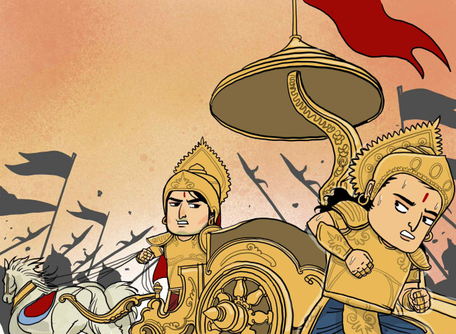 ด้วยความกลัวหัวหด เจ้าชายอัตราร้องไห้ออกมาอย่างไม่อาย แถมยังสั่งให้พฤหันนลาเปลี่ยนเส้นทางเดินกลับเมืองเพื่อหนีเอาชีวิตรอด ไม่ว่าพฤหันนลาพยายามเกลี้ยกล่อมอย่างไรก็ไม่เป็นผล ในท้ายที่สุดเจ้าชายอัตราทนไม่ไหวกระโดดออกจากรถศึกเพื่อเอาชีวิตรอด จนพฤหันนลาต้องลงจากรถม้าเพื่อวิ่งไล่ตามเจ้าชายอัตราให้กลับมาทำสงครามแต่โดยดี
