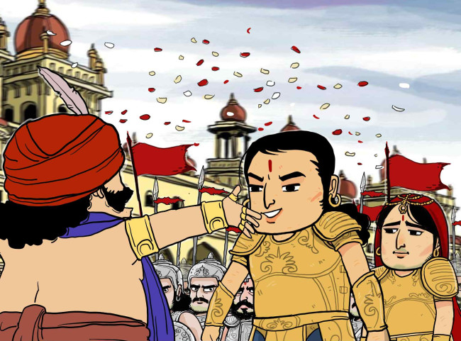 ระหว่างที่เรื่องราวในราชสำนักกำลังชุนมุนวุ่นวายอยู่นั้น มีข่าวส่งมาถึงท้าววิราฏว่าเจ้าชายอัตราได้เดินทางกลับมาแล้ว ท้าววิราฎก็ยินดีเป็นอย่างยิ่งรีบวิ่งออกไปต้อนรับทันที