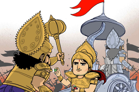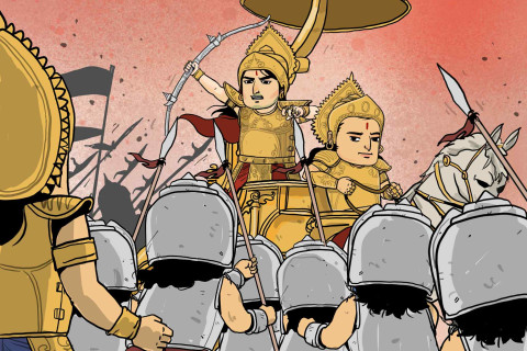 งานแต่งงานระหว่างเจ้าชายอภิมันยุ กับเจ้าหญิงอุตตรา ลูกสาวของท้าววิราฏ ถูกจัดขึ้นอย่างยิ่งใหญ่ เหล่ากษัตริย์ทั้งหลายที่สนับสนุนพี่น้องปาณฑพได้รับคำเชิญให้มาร่วมพิธีอย่างพร้อมหน้าพร้อมตา โดยเฉพาะฝั่งเมืองทวารกา ไม่ว่าจะเป็นกฤษณะ พลราม...