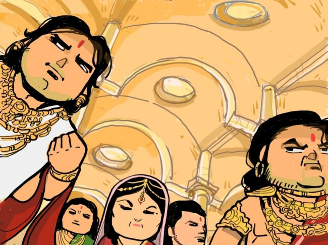 ว่าแล้วก็สั่งการให้เร่งสร้างราชวังอันวิจิตรตระการตาที่เมืองวาราณาวัต เพื่อเป็นที่ประทับของพวกปาณฑพ