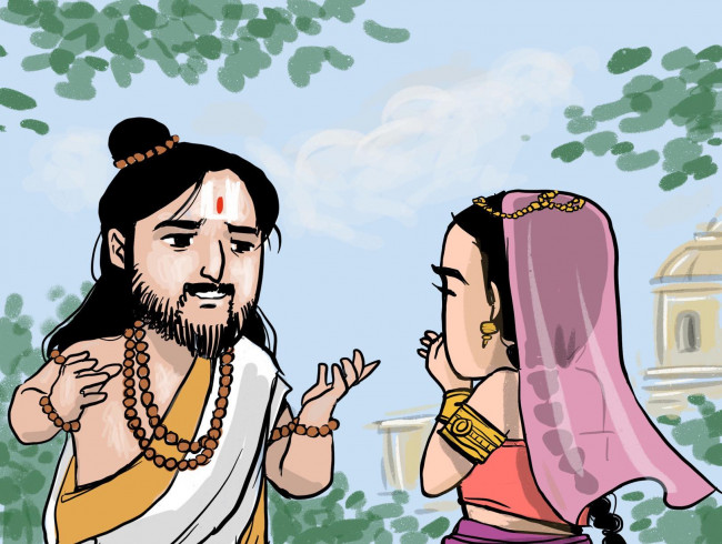 หลังจากอรชุนเปิดเผยตัวกับเจ้าหญิงสุภัทรา เจ้าหญิงก็หน้าแดงที่จู่ๆ คนที่พระนางหลงรักกลับยืนอยู่ตรงหน้า อรชุนพรรณาความรักที่มีต่อพระนาง ส่วนเจ้าหญิงรับฟังอย่างเขินอาย และเดินทางกลับที่พักโดยไม่เอ่ยปากสักคำ