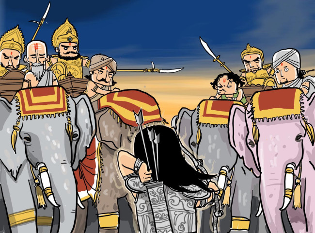 เมื่ออรชุนได้พบกับพระราชาศัลวะ ซึ่งเป็นพระองค์เดียวกับที่เคยต่อสู้กับท้าวภีษมะ เมื่อครั้งที่ท้าวภีษมะท้าประลองเพื่อแย่งเจ้าสาว อรชุนก็สามารถสู้รบชนะท้าวศัลวะได้อย่างง่ายดาย