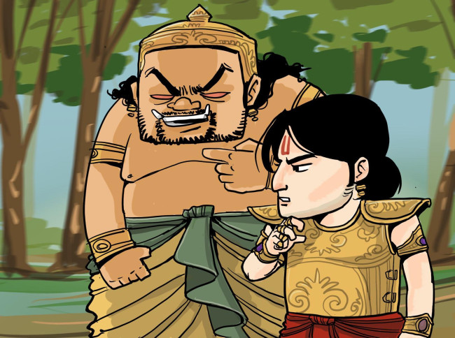 ทันใดนั้นเองฆโฎตกัจก็ปรากฏตัวขึ้นต่อหน้าสหเทพ และพูดกับสหเทพว่าท่านอาต้องการให้ข้าช่วยอะไรได้โปรดบอกออกมาได้เลย สหเทพดีใจมากที่ได้เจอฆโฎตกัจทั้งสองกอดกันอย่างแนบแน่น นับว่าผ่านเวลามาหลายปีจากครั้งล่าสุดที่ได้เจอกัน