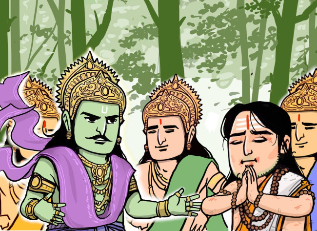 อรชุนมีความยินดีเป็นอย่างมาก ทั้งกราบและทำความเคารพต่อเทพเจ้าทั้งหลาย เทพทั้งหลายรู้สึกดีในความถ่อมตัวของอรชุนจึงให้พรแล้วจากไป