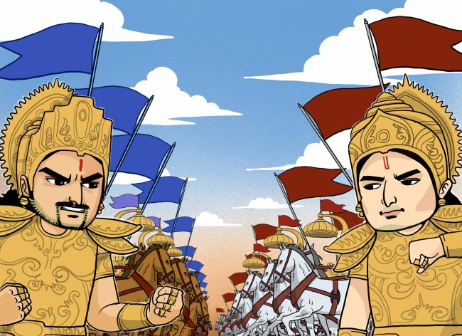 หลังจากผ่านการเตรียมการอันมากมาย ในที่สุดทัพของราชสำนักหัสตินาปุระ นำโดยผู้บัญชาการรบภีษมะ ก็ได้ตั้งหลักประจันหน้ากับกองทัพพี่น้องปาณฑพ นำโดยผู้บัญชาการรบธฤตทยุมน์